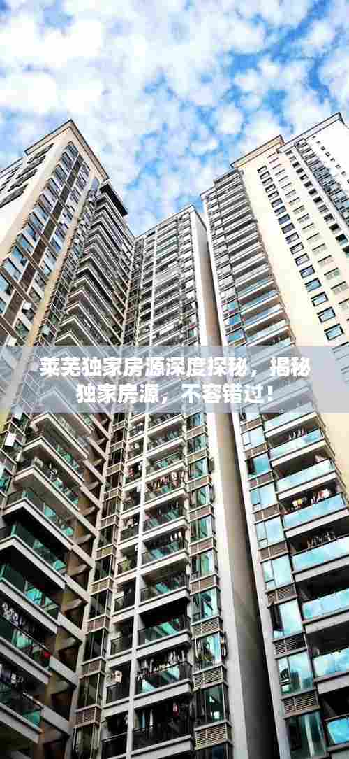 为了更好地了解莱芜的独家房源,您可以关注当地的房地产网站、社交媒体和房产中介的信息,参加房产展览和开放日活动也是了解房源的好机会,在购房过程中,如有任何疑问,可咨询专业人士,以确保您的购房决策明智可靠。